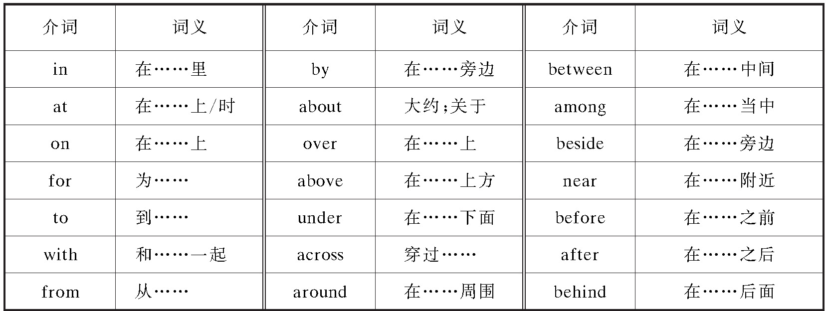 介词又叫前置词,在句子中不能单独使用,总是与其后面的名词、代词或相当于名词的词一起构成介词短语,表达多种不同的意义。