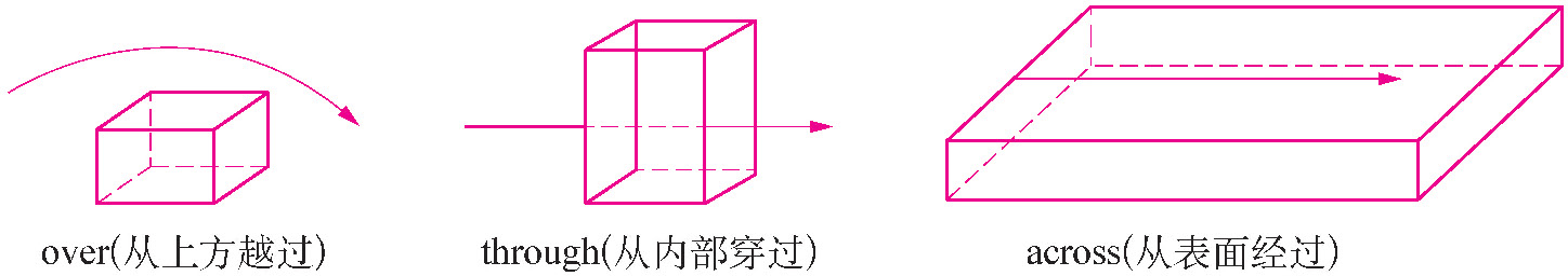 ■ across 表示“横过、穿过”,指在某一平面或物体上从一边过到另一边去。如: