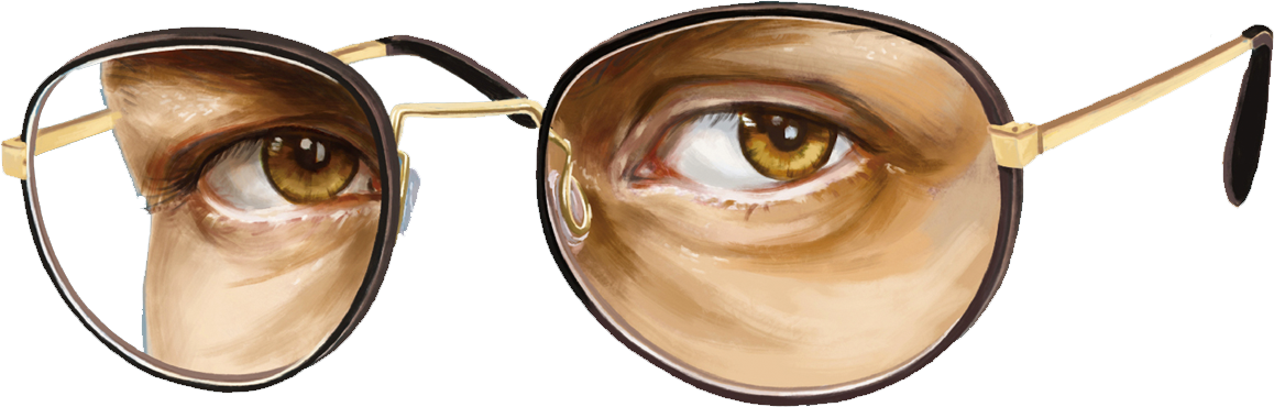 “噢,我想我记起来了。背景是摇摇欲坠的峭壁,前面是一副金边眼镜。”