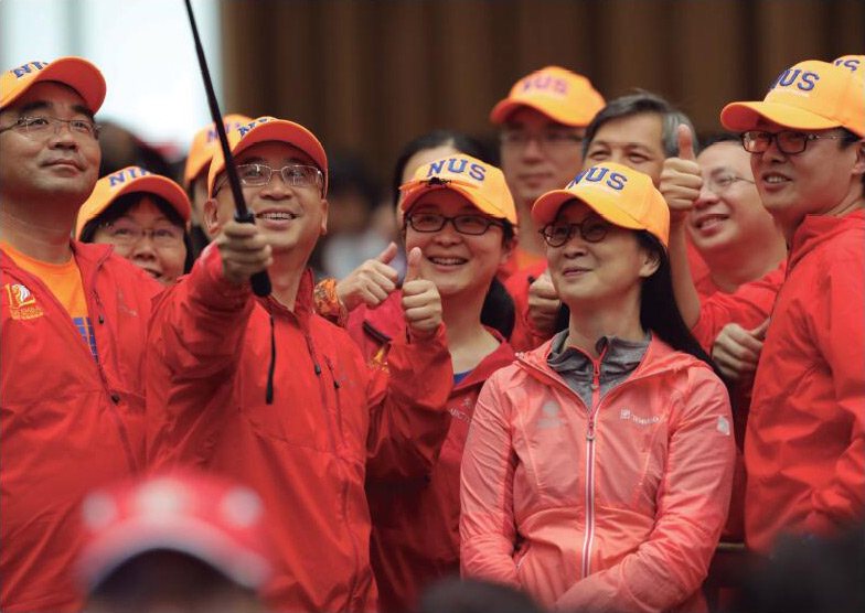 我们排队入场,国发院组委会准备了好多学院旗帜,当口号响起来的时候,威武豪迈的形象也入画中。来到会场中间,参赛的几十支队伍,口号震天,旗帜招展,千军点将之势,振奋人心。巧合的是新国大与国发院的队员坐在一起,让我可以不偏不倚地与两队同学集合在一起。华南理工大学是首次观摩赛事,我跑去找他们合影,兴奋于他们终于参与了这个赛事。想不到会遇到南京品成梦想的家人,大家又快乐地在一起照相,相遇的美好,一波一波荡漾开。可以靠在温暖的老师和同学们身边,幸运亦温暖。