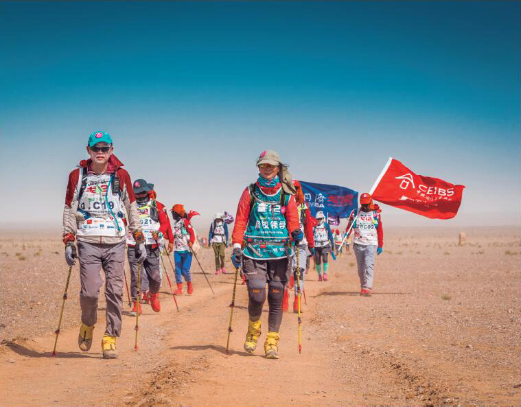 能感受到这一切,幸有无数人提供了帮助。感谢炯华队医以及三个队的队长、各小组长鼎力支援与悉心照顾!感谢牟震总队长、佘广等组委会的领导有方!感谢后勤雪亚、小智、飞雄,还有大鹏无私的付出!感谢健哥实时记录。走在路上,总会遇到公益大使、志愿者的帮助,很多媒体朋友更是扛着设备,为大家记录着每一步的真实。每一个戈友真诚地问候和加油,新国大的廖队医也在不断关注着我,晚上到新国大的大帐去看他,廖队医用一个大大的拥抱迎接我,想不到陈校长、媛媛、凌秋都在,每个拥抱温暖无比。正是无数人的付出,才会有我三次站上赛道的收获。体验日之后,A、B队的队员进入正式比赛日,将以更大的毅力去体验更不一样的属于他们自己的戈壁。