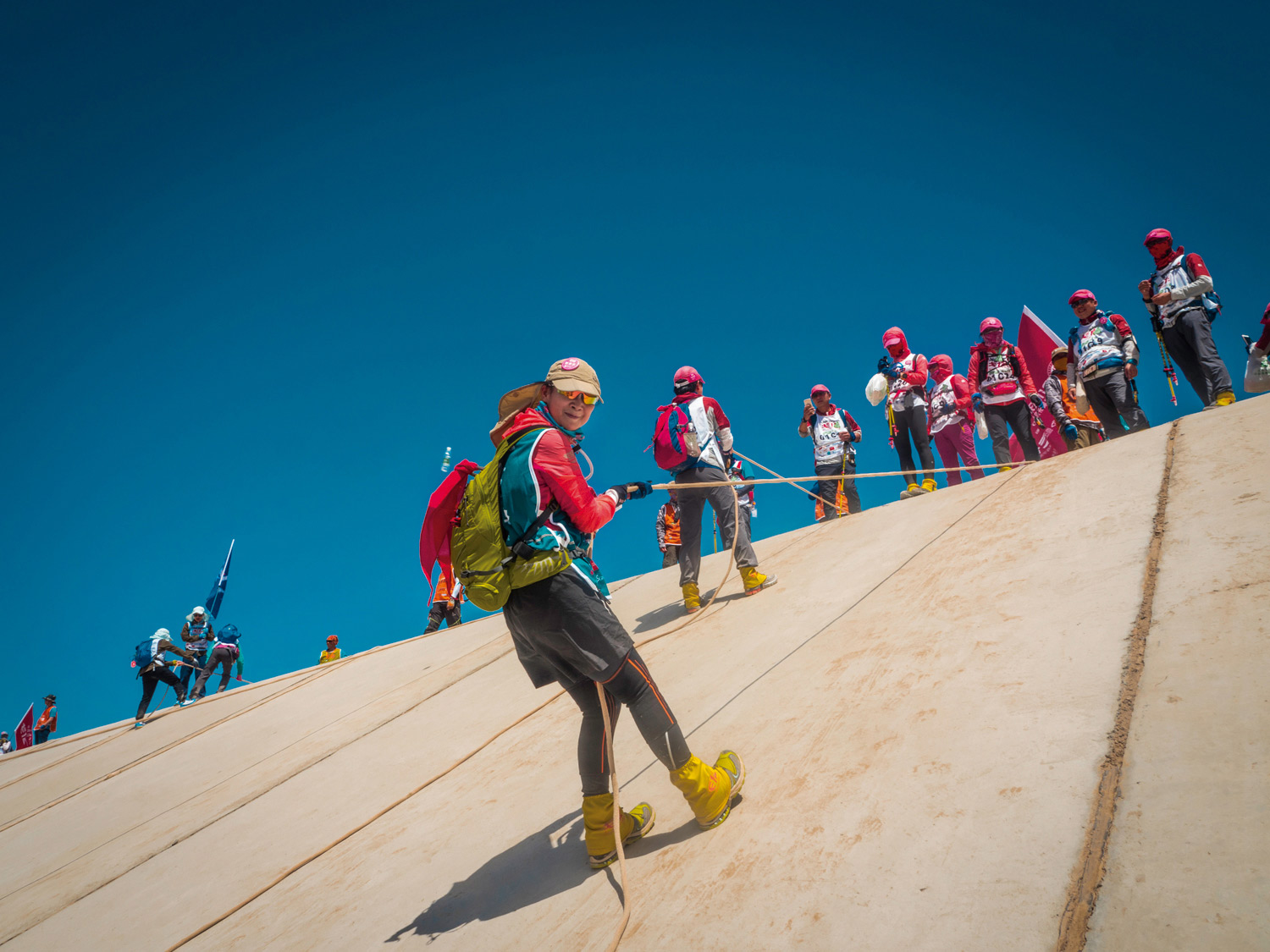 发现这一点让我很快乐,大家的选择正是融入大漠的方式,用最原始的方法去体会前人行走的感受,用正确的方式迈开戈壁挑战赛的每一步,这样就能够真正地进入每一步的交流之中,因每一步倾听到与前人彼此的呼吸,因每一步与前人流淌着相同的汗水。
