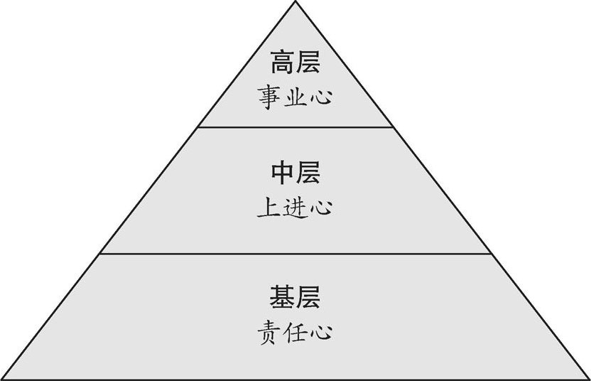 人的管理,其实可以简化为“三力”管理,也就是对员工“能力”“动力”和“压力”的管理。企业各个管理层级的格局不尽相同,进行“三力管理”的目的,就是为了提升基层员工的胜任力和责任心(见图2.3)。