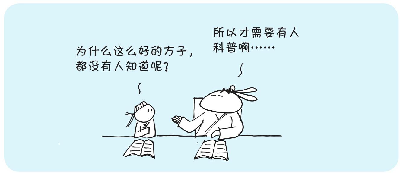中医能治病救人,职业神圣,造福一方,但惠及的人数有限。科普工作者是知识的搬运工,虽然看上去深度不够,但在某种程度上可以帮助更多人。