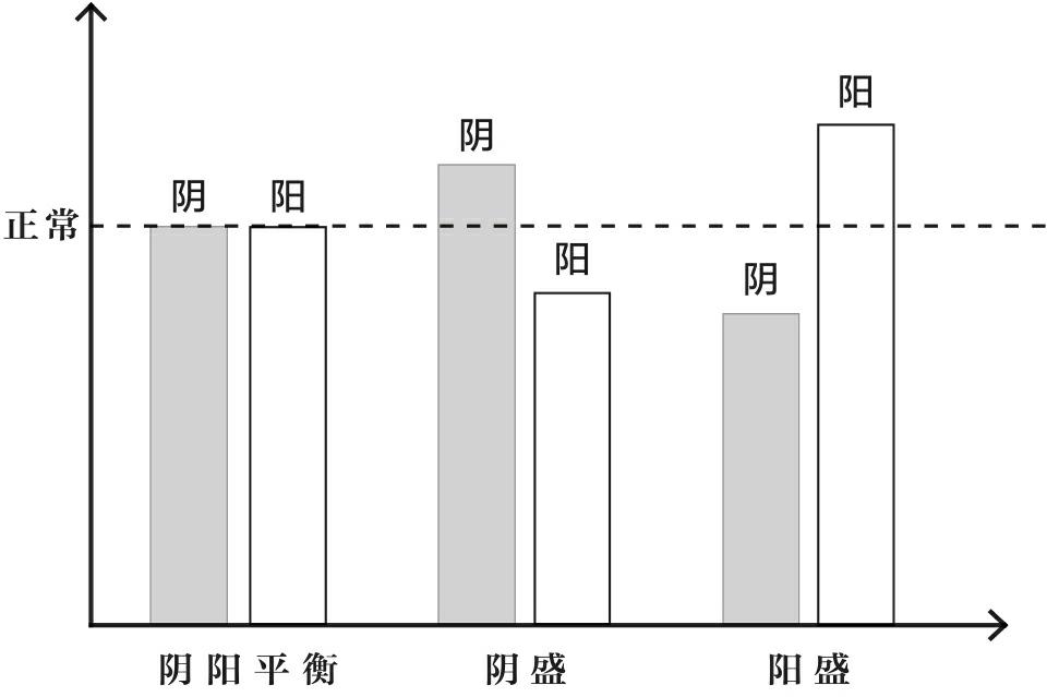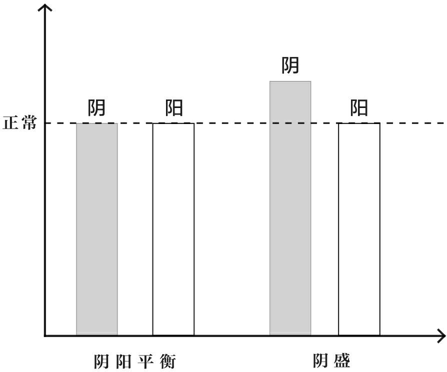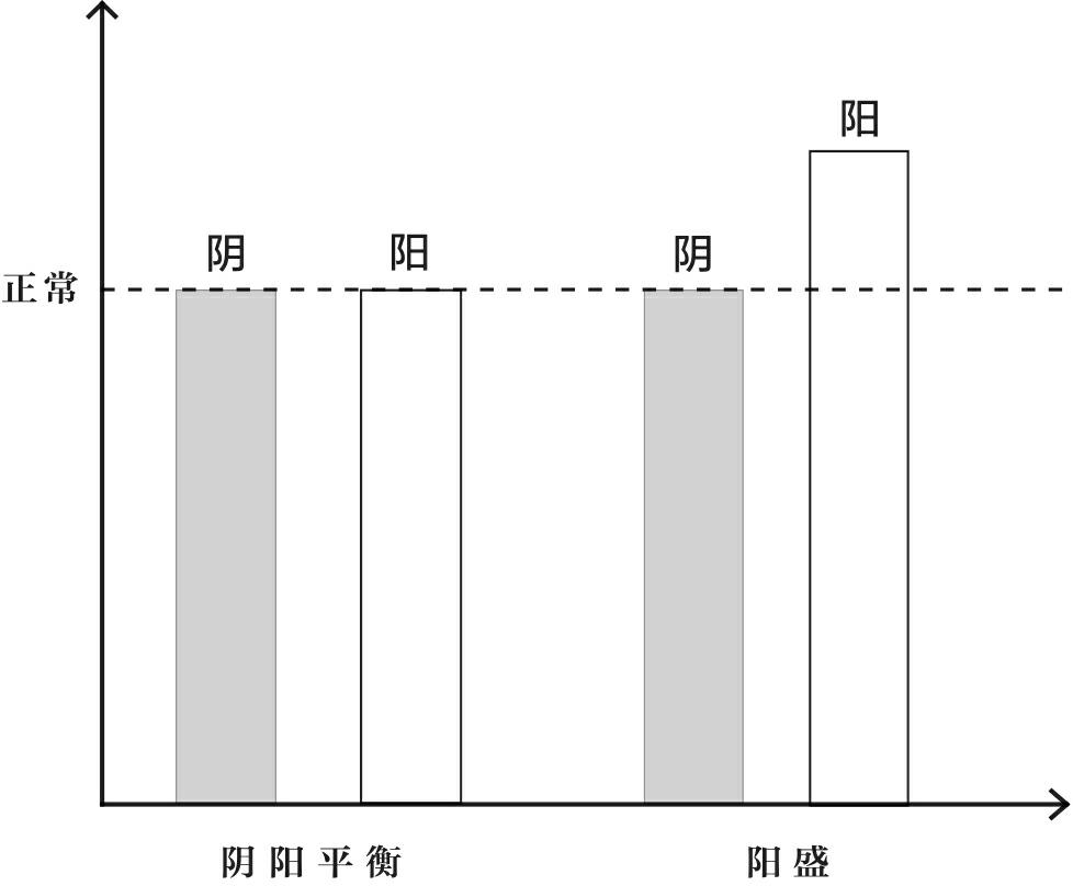 即阴偏盛、阳偏盛。指阴、阳任何一方高于了正常水平的病理状态。