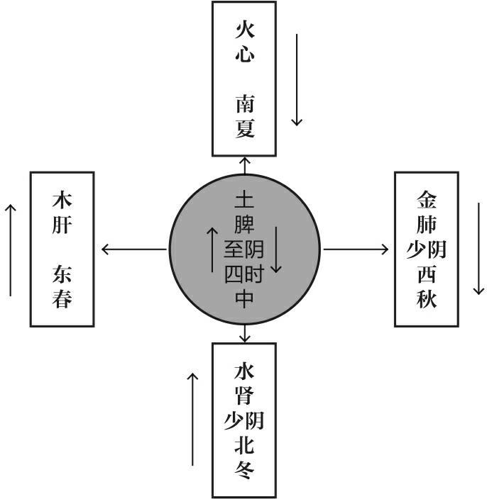 来用一个图来说下季节和五脏对应的五行吧。了解这个非常有用,后面我们学到五脏方面的知识时,很多问题就很容易理解了。