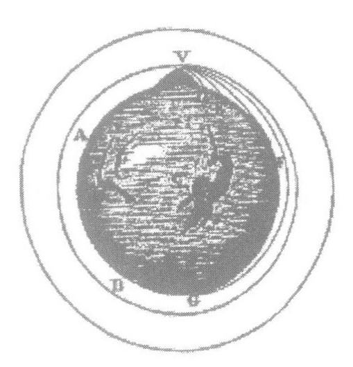 月亮之所以不会撞向地球只是因为它有垂直于地球半径方向的速度,就像打出去的快速炮弹。牛顿意识到了前人所不曾注意到的问题:月亮在降落。