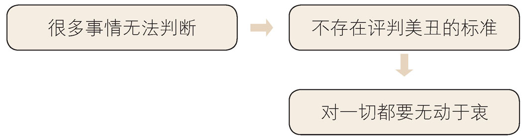 因此,皮浪在判断美与丑的时候直接否认掉这种判断方法,因为他认为事物是没有美丑之分的,只有正当与不正当的分别,并没有某一种美或者丑的属性是跟随着事物存在的,人们只会根据风俗习惯来选择是否进行这种活动,这就是人们对事物的判断。也就是说他认为 评判美与丑的标准并不存在 ,认为无法去判断美丑,而最好的做法就是不做判断。