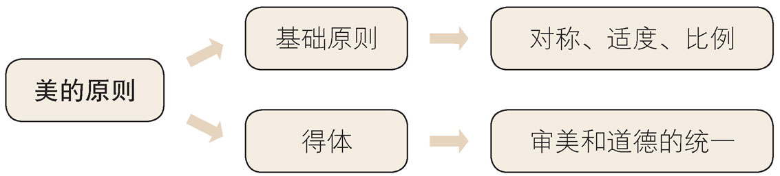 他们说道:“人体的美就是构成互相间关系以及对整体关系和各部分之间的对称,而心灵的美则是智慧及其对整体关系和互相间关系的各种因素的对称。”也就是说,他们认为 对称、适度、比例等因素是美的基础原则 。