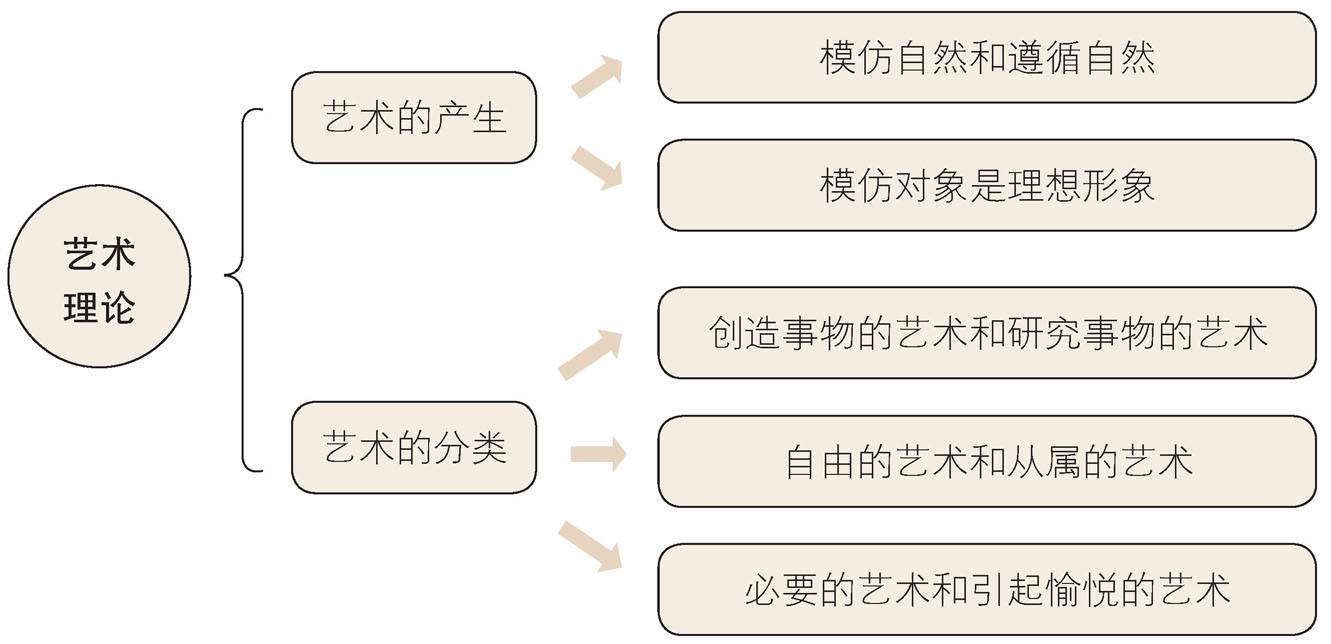 西塞罗对艺术的理解停留在对前人总结的基础上。在艺术的产生上,他认为 艺术是模仿自然和遵循自然 。但是在具体创作的过程上,他又认为艺术 模仿 的并不是完全真实的自然形象,而是 想象中的理想形象 ,而且他认为这种理想形象就是柏拉图所说的“理念”。显然这两个观点之间有相互矛盾的成分,这就是折中主义存在的缺陷,缺乏对美的判断的基本原则。