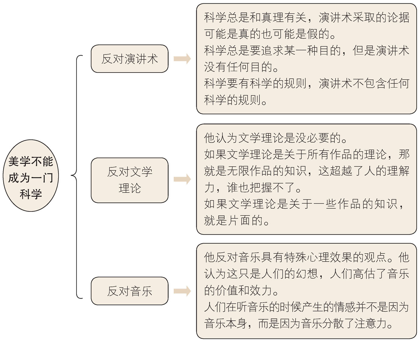 他 反对演讲术 ,认为演讲术不能成为一门科学。演讲所采用的论据有真有假、不可相信,演讲术没有科学的目的和效用,而且也不存在任何科学的规则。