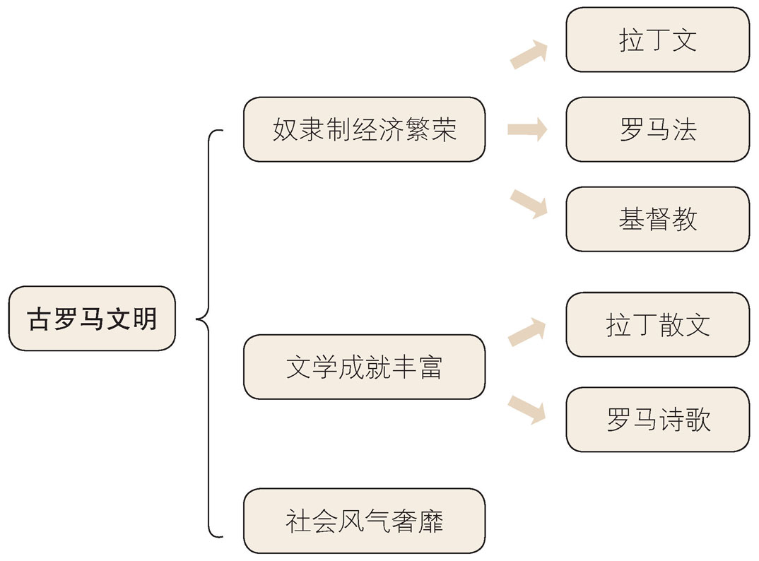 古罗马文化的发展受 到了希腊文化的很大影响 ,同时自身也发展迅速。最早在罗马帝国被使用的 拉丁文 ,成为很多民族创造文字的基础。很多当时的 建筑遗址 一直保留到现在,具有很高的艺术价值和观赏价值,如罗马斗兽场、君士坦丁凯旋门、庞贝城、万神庙等。 罗马法 中蕴含的人人平等、公平至上、契约自由以及物权制度、契约制度、陪审制度、律师制度等,一直到今天都有很高价值。在罗马帝国产生和发展起来的 基督教 ,对欧洲文化甚至是全世界的文化发展影响深远。