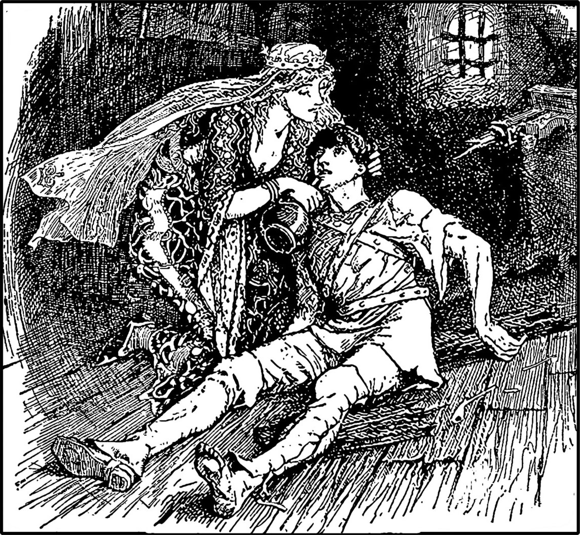 金山王走进城中,发现到处都是一派喜气洋洋的景象。他向一个老百姓打听,才知道王后马上就要跟一个王子结婚了。金山王非常生气,他穿上斗篷,一路畅通无阻地来到了城堡里。