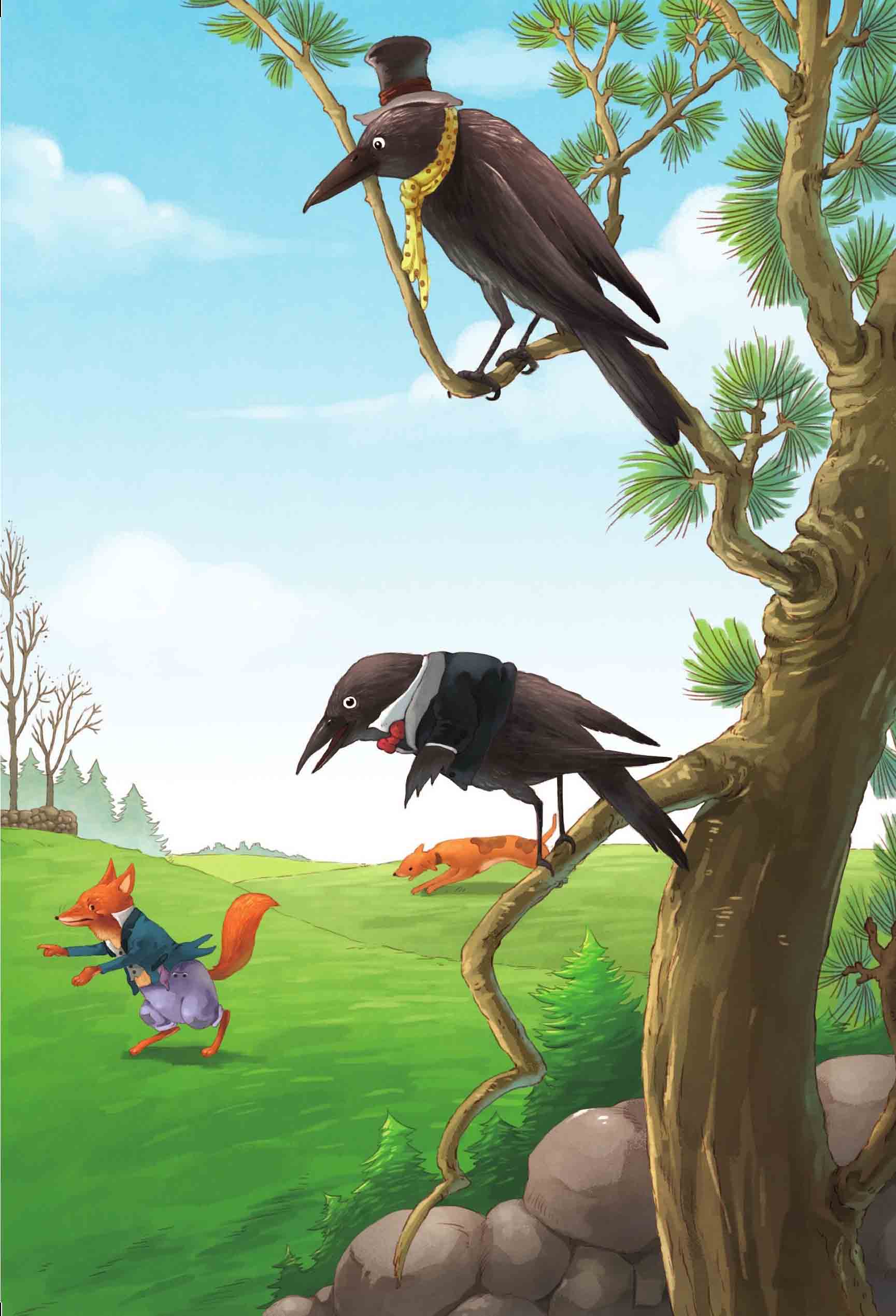 乌鸦黑黑答应了,到时候他一定会去。于是,雷迪开始四下寻找,看看鲍泽在哪呢。乌鸦黑黑逢人便讲,狐狸雷迪放出大话,说一定要耍一耍猎犬鲍泽。每次将这事儿说上一遍,就会咯咯地乐上一阵子,他觉得这真是他听到过的最好笑的笑话了。