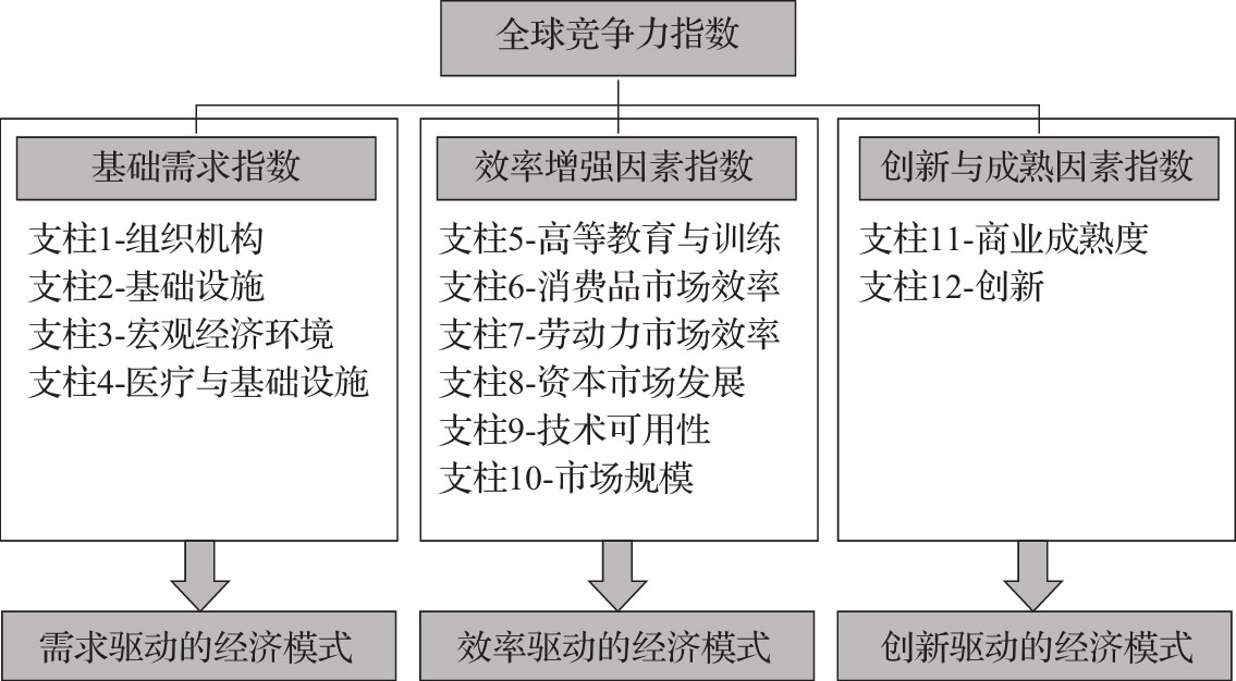 国家竞争力发展阶段可分为要素驱动、效率驱动和创新驱动三个不同阶段。