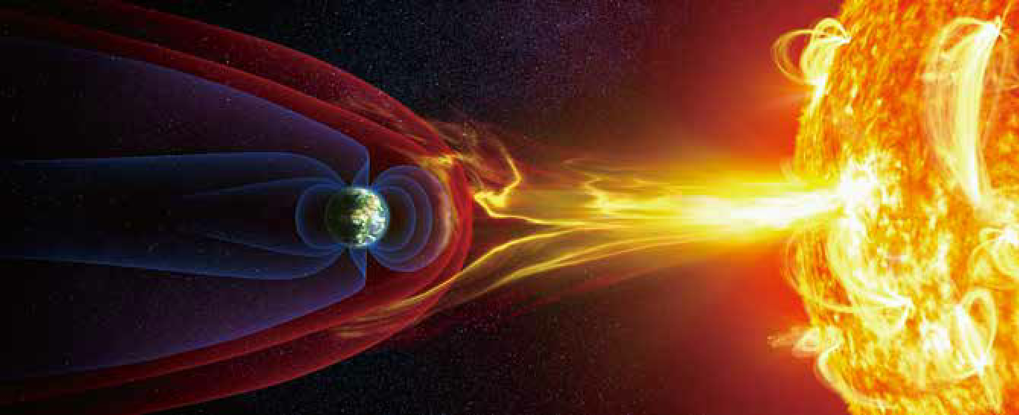 与此同时,地球核心的压力已经超过350万个大气压,在这样的压力下,核心处的铁、镍无法再保持液态,被压成了更致密的固态。这个固态内核的半径约为1200千米。距地球中心1200千米开外的铁由于压力的降低仍然得以保持液态。地球的自转使得液态的铁质外核转动起来,液态的铁外核与固态的铁内核之间形成的耦合与转动,构造出一个行星规模的发电机,地球的磁场产生了。无形的地球磁场释放出强大的能量,狂暴的太阳风在地球磁场的面前也只能如激流遭遇中流砥柱般从旁边绕过。这个强大的磁防护罩为日后地球产生的第二代大气提供了有力的保护。