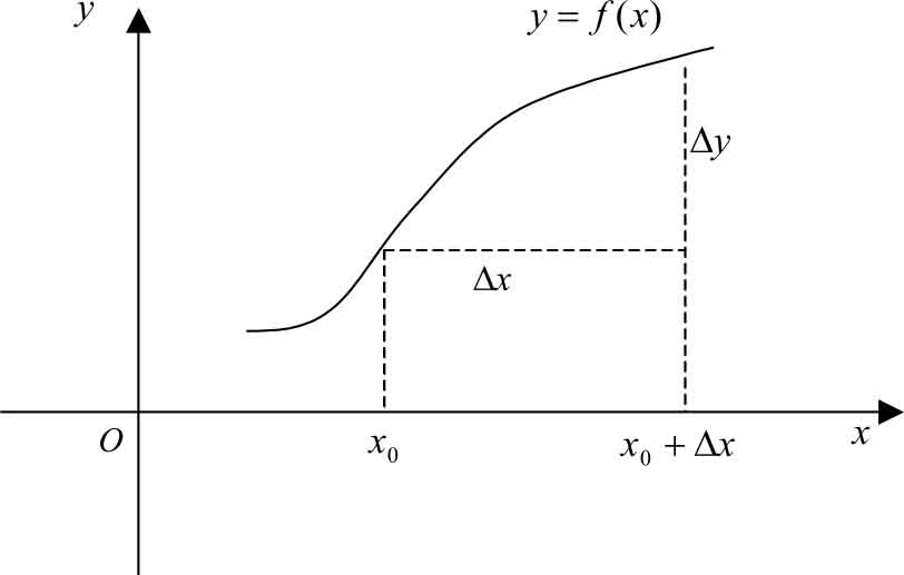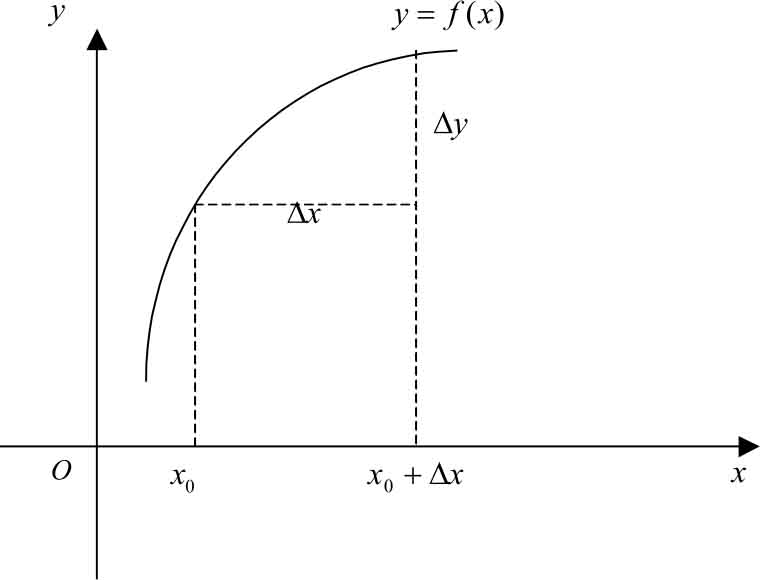 应当注意:Δ u 是一个完整的记号。变量 u 可以看作是自变量 x ,也可看作是函数 y 。如果是自变量 x ,则称Δ x = x 1 -x 0 为自变量的增量;如果是函数 y ,则称Δ y = y 1 -y 0 为函数的增量。