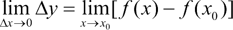 定义 2.9 设函数 y = f ( x )在点 x 0 的某一邻域内有定义,如果当自变量 x 在点 x 0 处的增量Δ x 趋近于零时,函数 y = f ( x )相应的增量