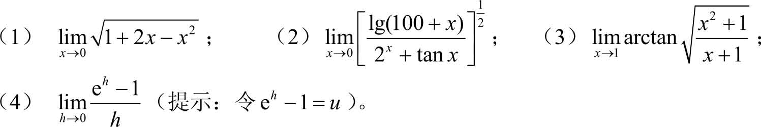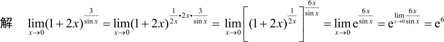 式(2.11)表明,在满足定理条件的条件下,求复合函数的极限时,函数符号“ f ”与极限符号“lim”可以交换运算顺序,这一结论给我们求极限带来很大方便。