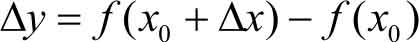 设函数 y = f ( x )在 x 0 的某邻域内有定义,当自变量 x 在由 x 0 变到 x 0 +Δ x 时,函数 y 相应地由 f ( x 0 )变到 f ( x 0 +Δ x ),因此,相应函数增量为Δ y = f ( x 0 +Δ x ) -f ( x 0 )。