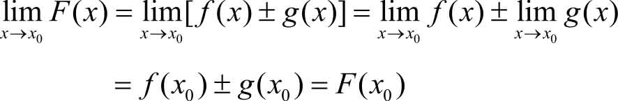 所以函数 F ( x )在点 x 0 处连续,即 f ( x )± g ( x )在点 x 0 处连续。证毕。