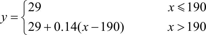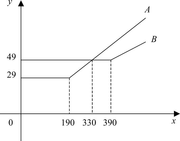 (2) 要使计划B比计划A省钱,即29+0.14( x -190)>49,解得 x >333。