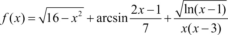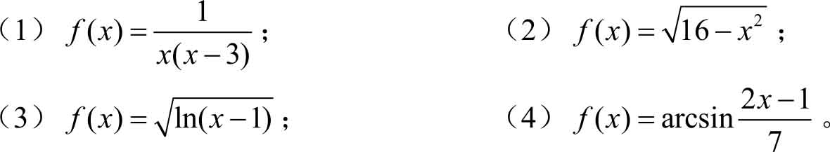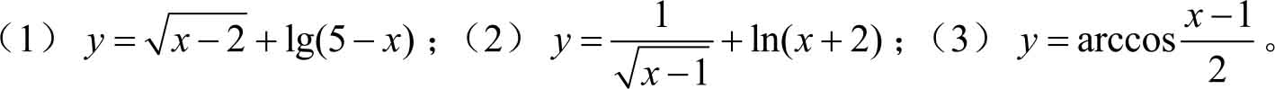 (3) 在对数式中,真数必须大于零,即 x -1>0, x >1;又因为偶次方根式中,被开方式必须大于等于零,即ln( x -1)≥0, x -1≥1, x ≥2,所以定义域为 [2,+∞)。