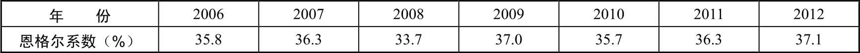 表1-1 2006—2012年我国城镇居民恩格尔系数变化情况