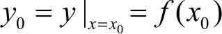 若对于确定的 x 0 ∈ D ,通过对应规律 f ,函数 y 有唯一确定的 y 0 相对应,则称 y 0 为 y = f ( x )在 x 0 处的函数值,记作
