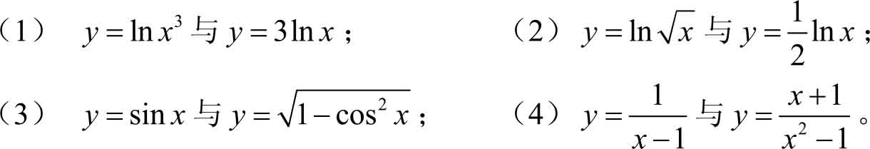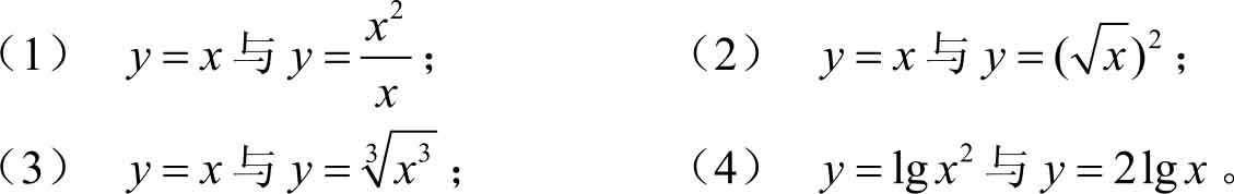 (4) 不是同一函数。它们的定义域不同, y =lg x 2 的定义域是 x ≠0的全体实数,而 y =2 lg x 的定义域是 x >0。