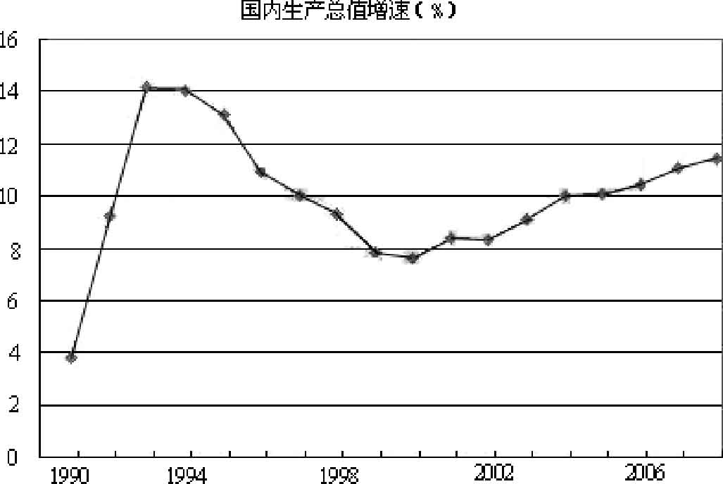 就是用函数图像表示两个变量之间的关系。图1-1所示是我国1990—2006年国内生产总值增速变化曲线。