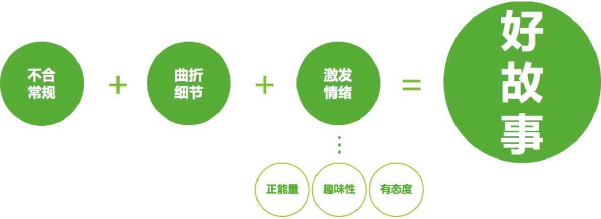 我来给大家一个“好故事公式”:好故事=不合常规+曲折细节+激发情绪