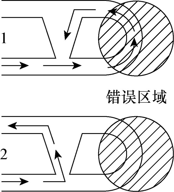 我们有时必须先错后对。比如,对比当前的参考框架,我们可能是错的,但换个参考框架就是对的。即使参考框架没有变化,先穿过错误区域,到达能看到正确路径的位置,有时也是必要的,如图2-4所示。虽然最终的路径中我们不会穿过错误区域,但穿行这一区域有助于我们发现正确路径。