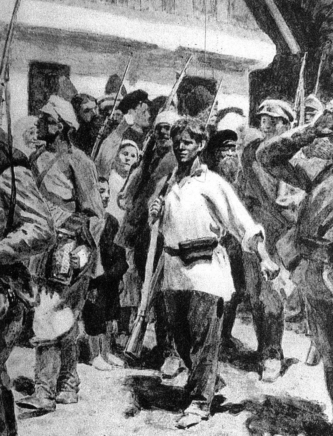 共和国把金质的红旗勋章挂在那些褴褛的制服上,挂在那心脏跳动的地方。机枪手共青团员伊凡•扎尔基的胸前也挂上了一个。