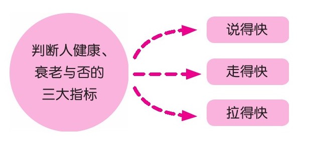 “世界卫生组织”给出的判断人健康、衰老与否的三大指标是——“说得快、走得快、拉得快”,这三个生活的细节体现并概括了身体最重要器官的功能状态。