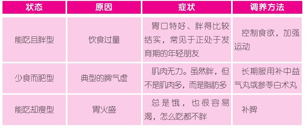 对此,金元时期的名医李东垣在他的《脾胃论》中早就清楚地提到了:“胃中元气盛,则能食而不伤,过时而不饥。脾胃俱旺,则能食而肥;脾胃俱虚,则不能食而瘦。或少食而肥,虽肥而四肢不举,盖脾实而邪气盛也。又有善食而瘦者,胃伏火邪于气分,则能食,脾虚则肌肉削,即食亦也。叔和云:多食亦肌虚,此之谓也。”
