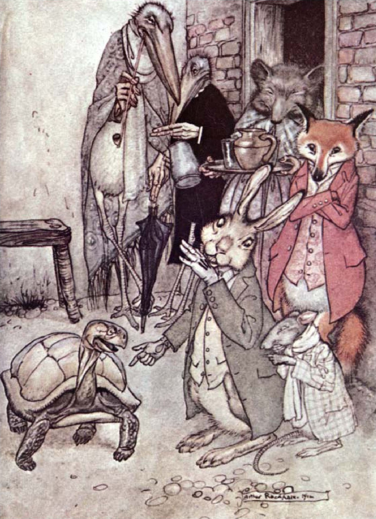乌龟超过了睡着了的兔子,夺得了胜利的奖品。