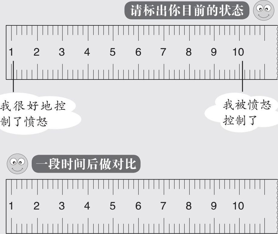 “成成,你看这把尺子,1代表你很好地控制了愤怒,10代表愤怒控制住了你。你回想一下,昨天大闹课堂的你,大概是处在标尺的什么位置呢?”