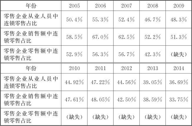 表2-1零售企业主要经济指标中连锁零售的占比