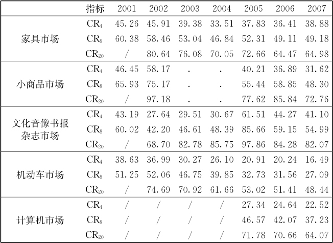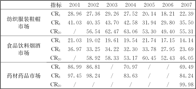 表2-2 2001—2007年我国工业消费品专业市场集中度(%)