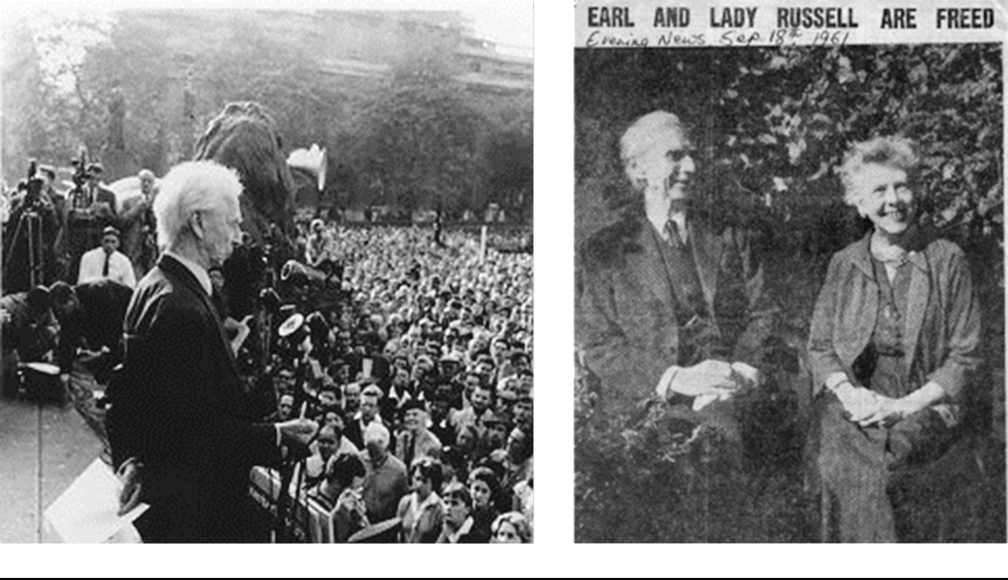 1961年,89岁高龄的罗素和夫人因参与一个核裁军的游行后被拘禁了7天。1961年9月18日《伦敦晚报》报道:这两位原本被判入狱两个月,但裁判官因医疗证词将这两个月改判为期一周。