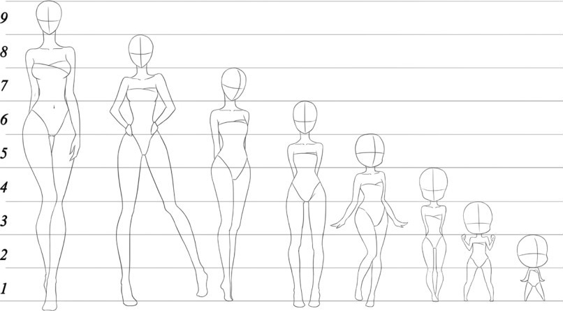 在漫画中,对人物头身比例进行变化就是改变人物的体型。通过了解人物的头身比,可以表现出各种不同的人物角色。下面来讲解漫画人物的不同头身比。