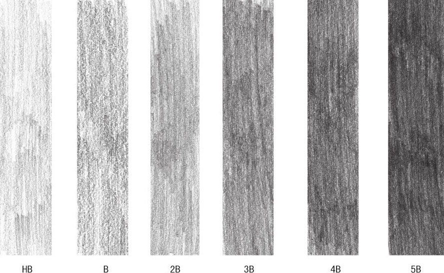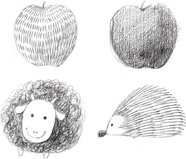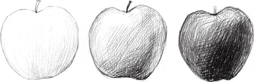 使用软硬不同的铅笔,即使用同样的力度,也可以画出深浅不同的明暗效果。