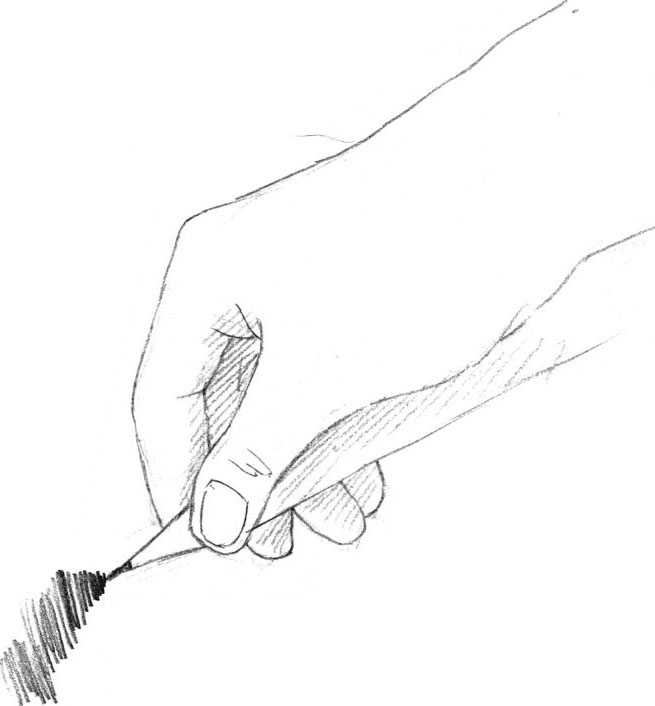图一: 像写字一样,握住笔的前端,笔触的重心在前端。