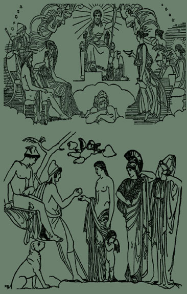 他十分惊愕,并准备着和新的敌人战争。但一个从泥土所生的人叫唤他:“不要动手反对我们!不要干涉我们兄弟之间的冲突!”他一面说,一面抽出利剑杀翻另一个武士,同时自己又被别人的标枪掷中。而投射标枪的人也同时受伤倒地,完结他的刚刚得到的生命。所以一整队人都在恶战中互相厮杀,不久差不多全部都躺在地上,在死的痛楚中挣扎,而地母却在饮着她所生的仅有着刹那生命的儿子们的血液。最后剩下的仅有五个人。其中的一人后来被称为厄喀翁的,最先依照雅典娜的吩咐放下武器,建议和平。别的人都跟随着他的榜样。