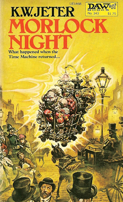 美国科幻作家凯文·韦恩·杰特于1979年写成的《莫洛克之夜》,是首部被以“蒸汽朋克”命名的科幻小说,这是一部致敬赫伯特·乔治·威尔斯《时间机器》的作品。在《莫洛克之夜》里,《时间机器》中出现的莫洛克得到了时间机器(与改编电影中的情节类似),搭乘它入侵了维多利亚时代的伦敦。由于时间线的变乱,古代英国的传奇性统治者亚瑟王,以及与他合作的魔法师梅林,也都现身维多利亚时代,抗击强壮的莫洛克,最终成为英国的拯救者。