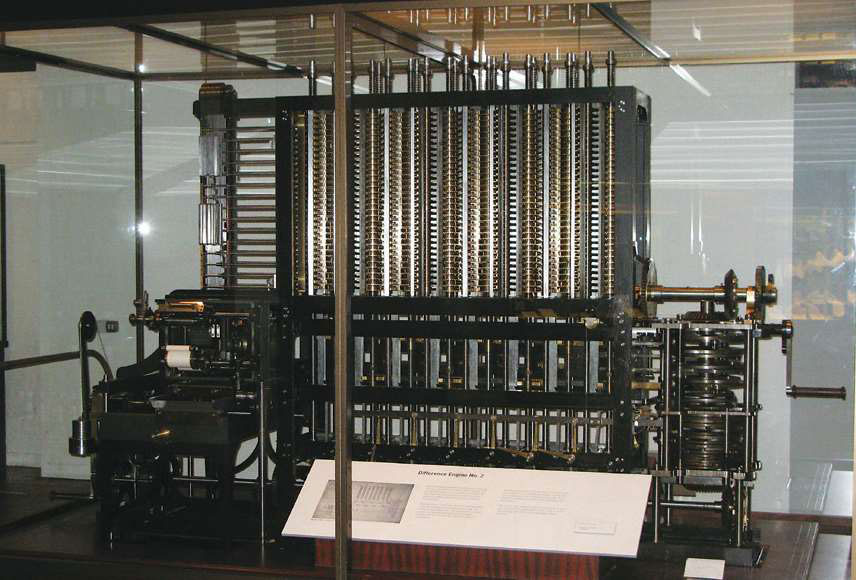 1822年,巴贝奇从一种以穿孔卡片控制的提花织布机得到启发,制成了第一台差分机。这种以杠杆、齿轮等结构进行运算的机械计算机,可以自动处理不同函数的计算过程。此后巴贝奇试图进一步制造计算精度更高的差分机,以及用途更广泛的“分析机”。但受制于19世纪中期的机械加工精度,他的这些设想都未能实现。