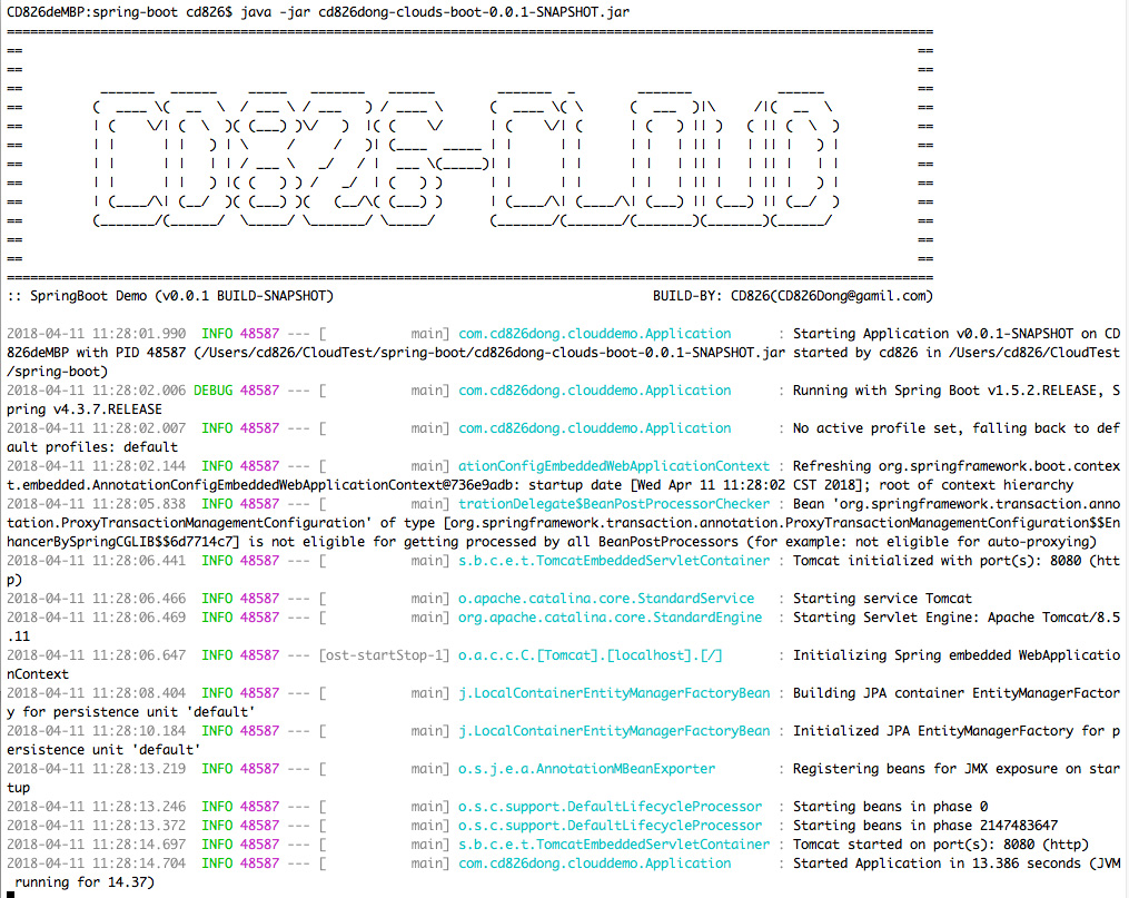 # 通过-jar直接启动 $ java -jar cd826dong-clouds-boot-0.0.1-SNAPSHOT.jar