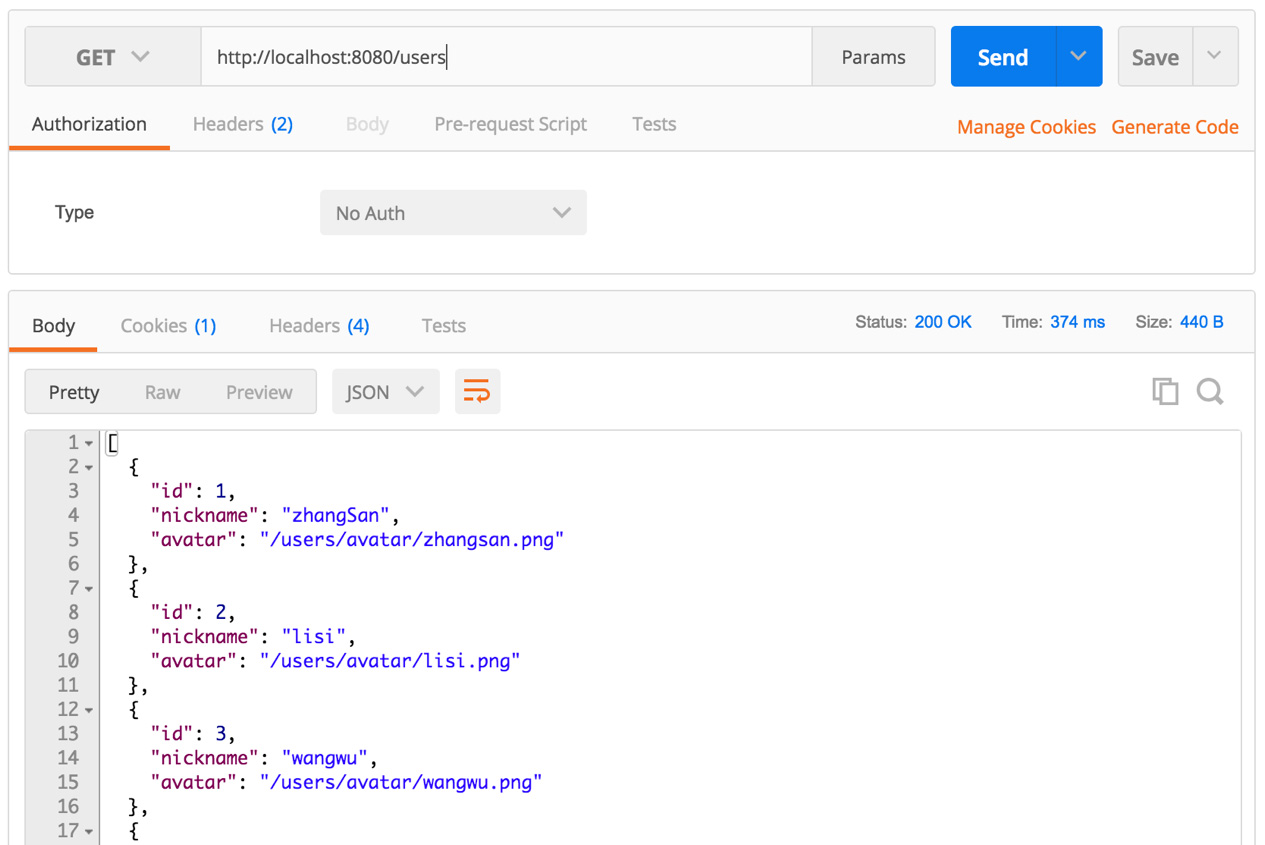 图2-8 使用Postman访问用户列表