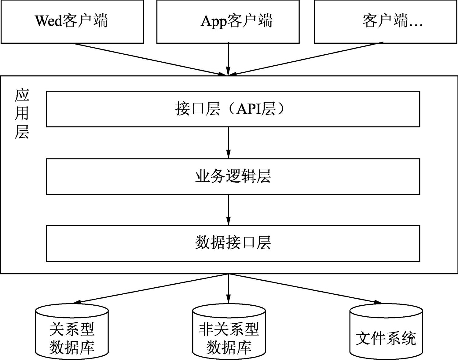 ·存储层:也称为持久层,通常是一个数据库,主要用来保存我们的业务数据。当然这里数据存储指的不仅仅是关系型数据库,也包含非关系型数据库,如MongoDB、Redis或者文件存储系统,在我们存储附件、多媒体文件或图片时使用。